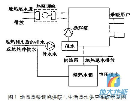 以往計算分析說明[:地?zé)?a href="http://m.zscxh.com/t/熱泵供暖.html" >熱泵供暖系統(tǒng),以地?zé)峒?a href="http://m.zscxh.com/t/熱泵.html" >熱泵調(diào)峰供暖方式的供暖成本和投 圖1地?zé)?a href="http://m.zscxh.com/t/熱泵.html" >熱泵調(diào)峰供暖與生活熱水供應(yīng)系統(tǒng)示意圖資低于熱泵單獨作熱源的供暖方式。