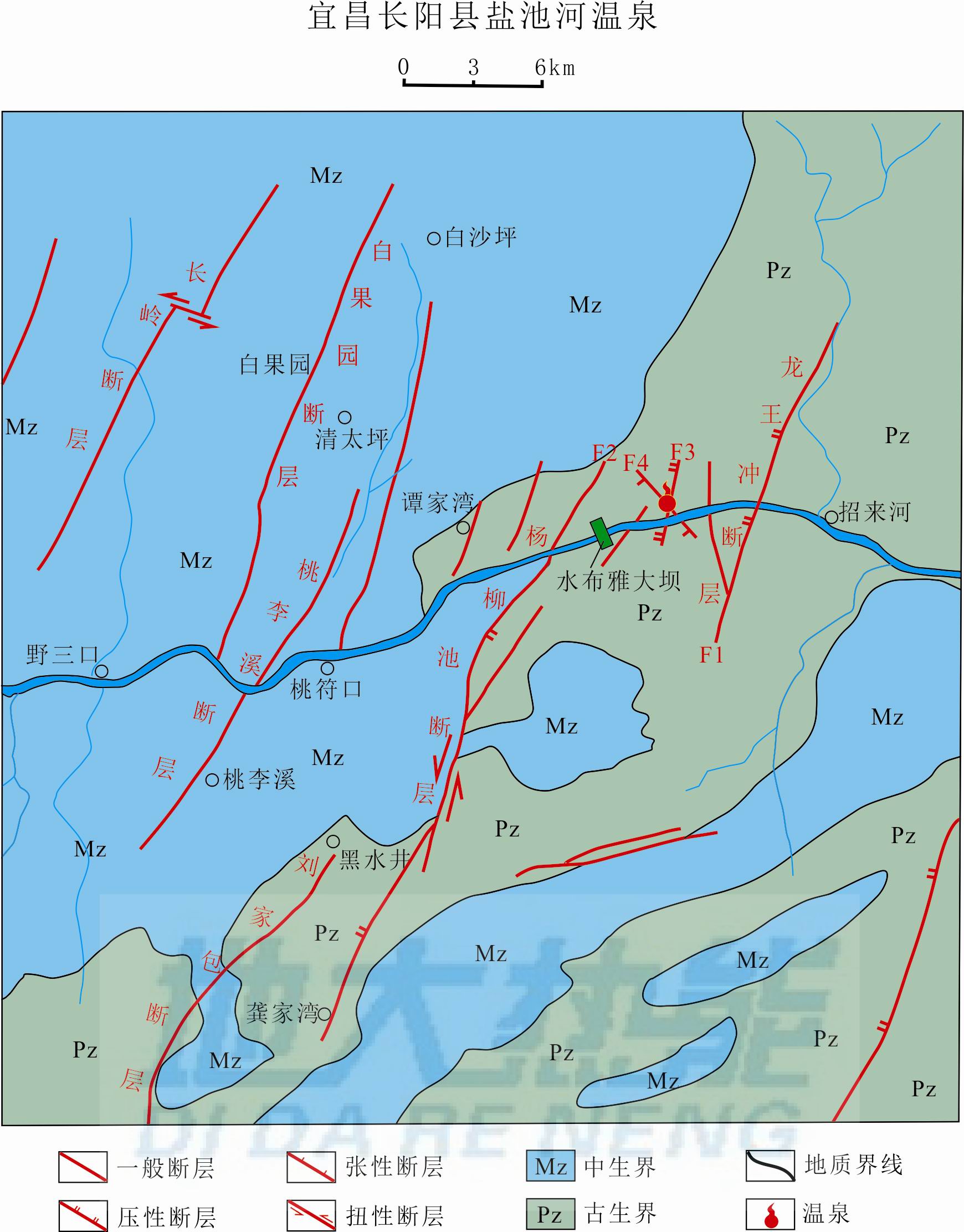 圖3 宜昌長(zhǎng)陽(yáng)溫泉構(gòu)造示意圖